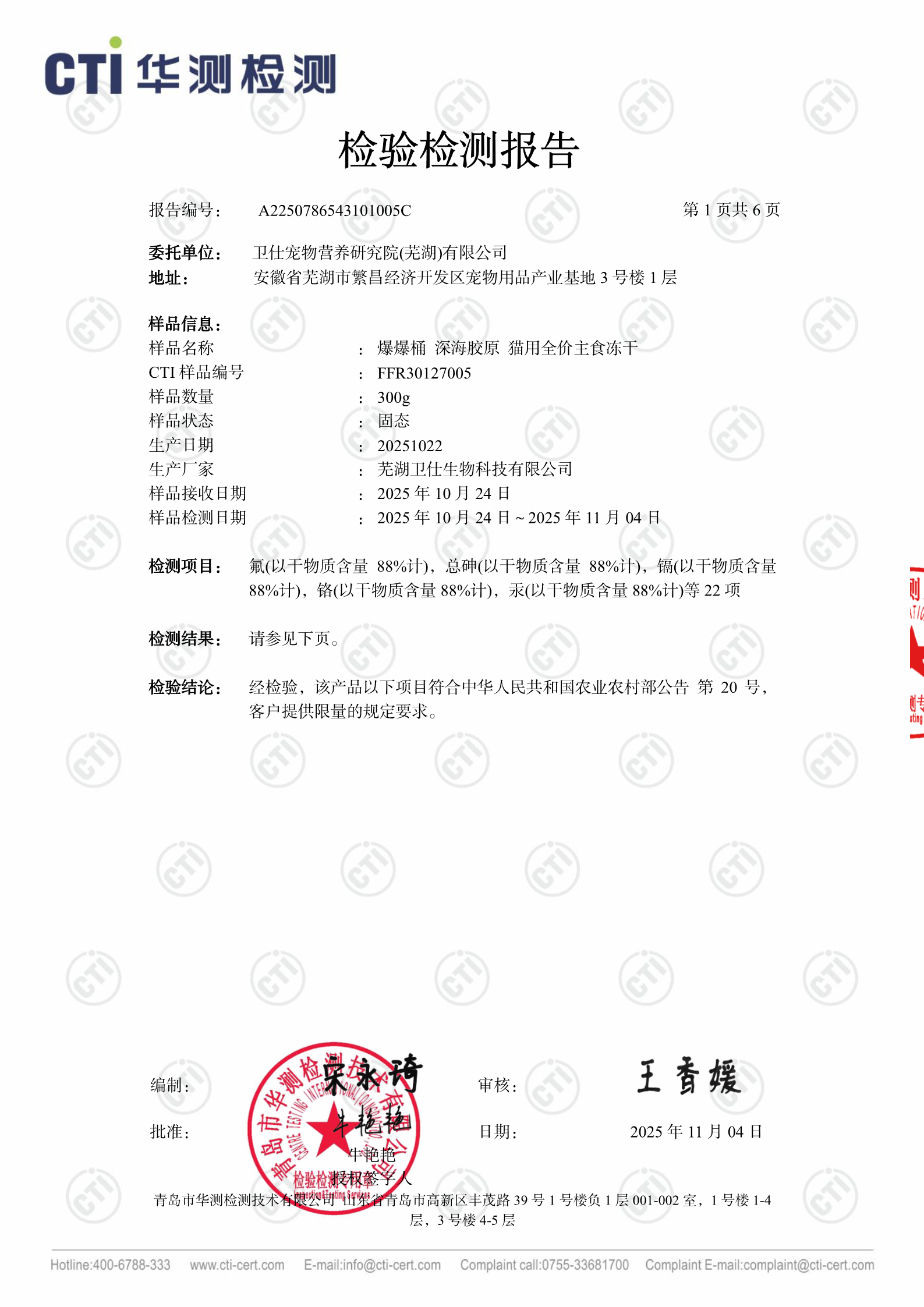 卫仕主粮质检报告 > 2025 10 22